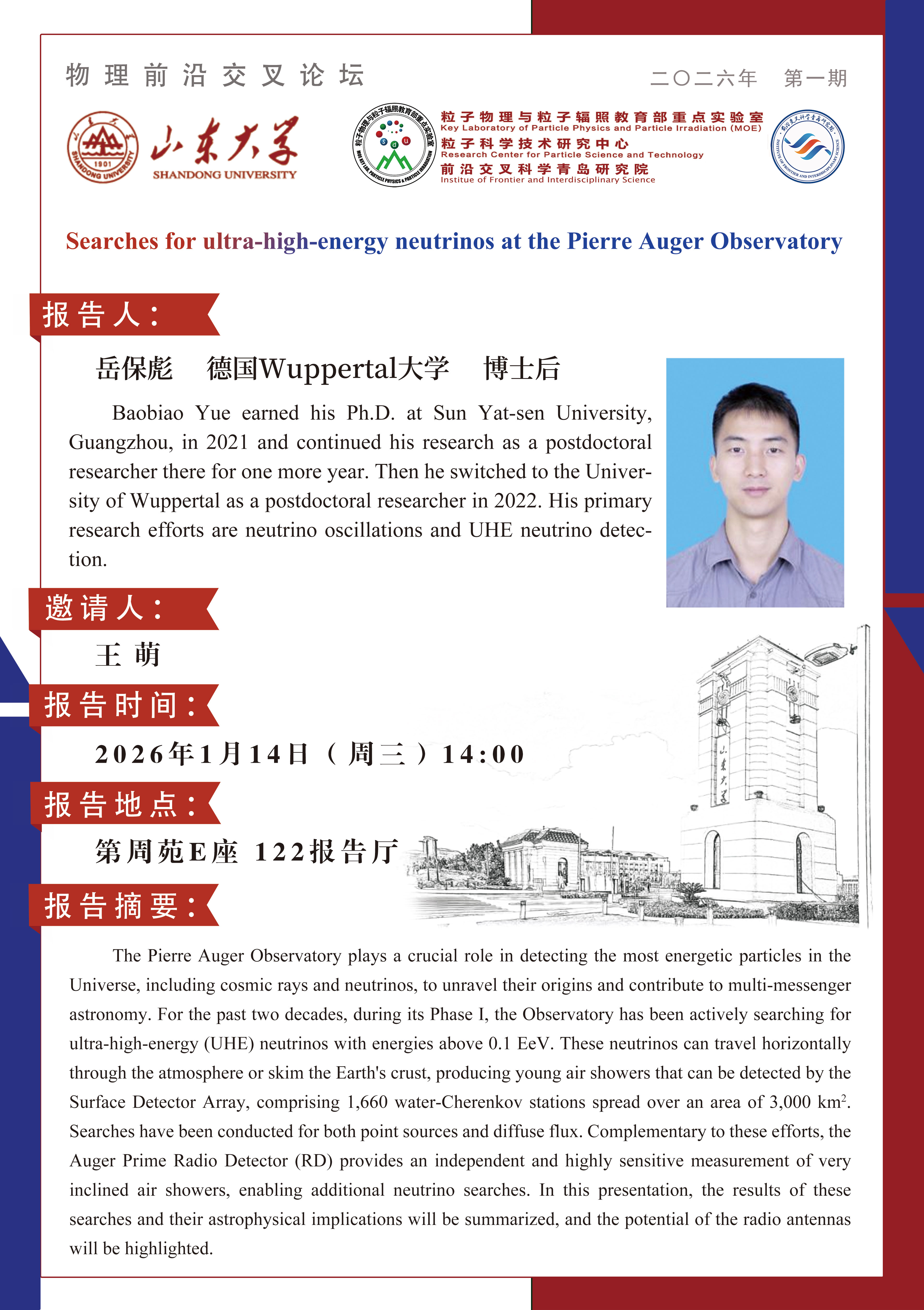 岳保彪:Searches for ultra-high-energy neutrinos at the Pierre Auger Observatory